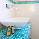 הנכס כולל חדר אמבטיה פרטי מאובזר עם מגבות, וילונות אמבטיה ומקלחת.